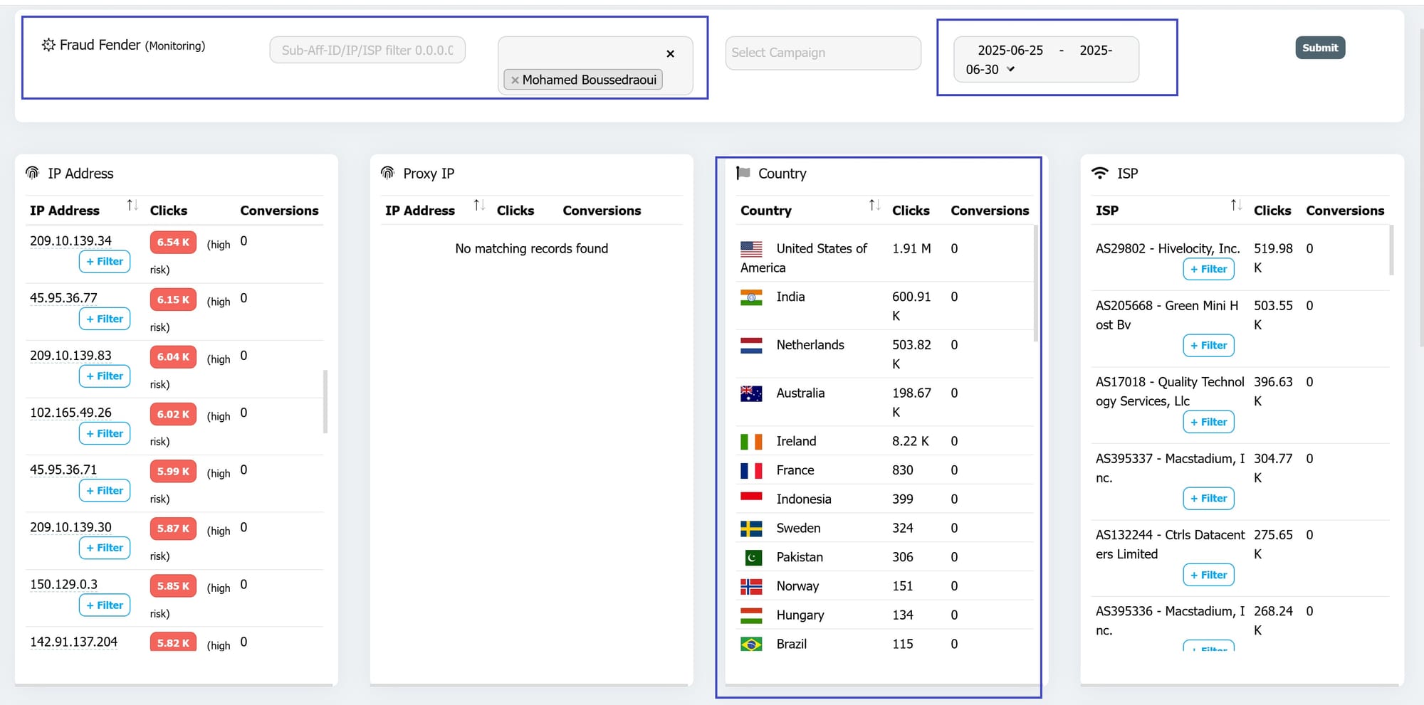 - Prodding and Click Velocity: The traffic showed inhuman behaviour: clicks occurring with mechanical precision (prodding) and at speeds that exceeded any physical or human capacity (click flooding), all designed to artificially inflate impression and click counts to manipulate the CPC.