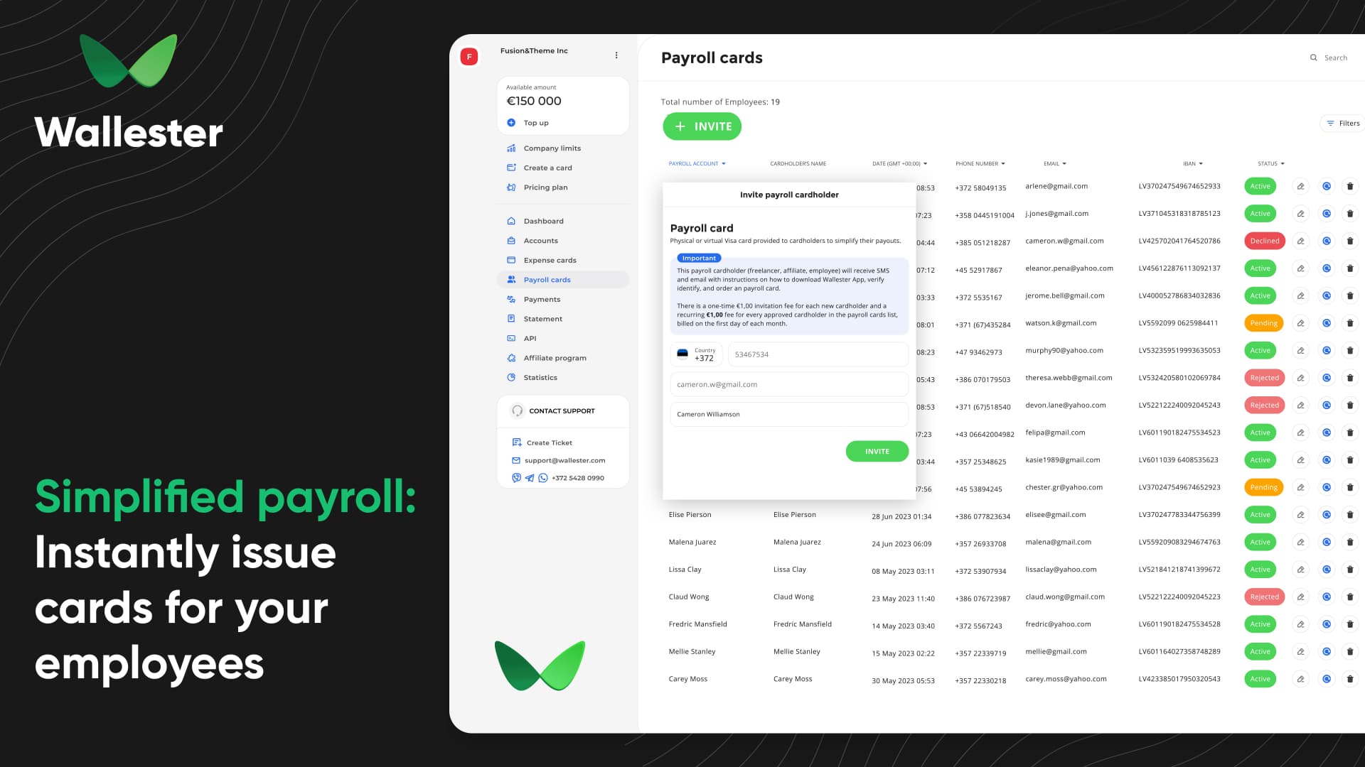 Wallester is a fintech platform that offers comprehensive solutions for issuing and managing virtual and physical corporate cards. It provides: