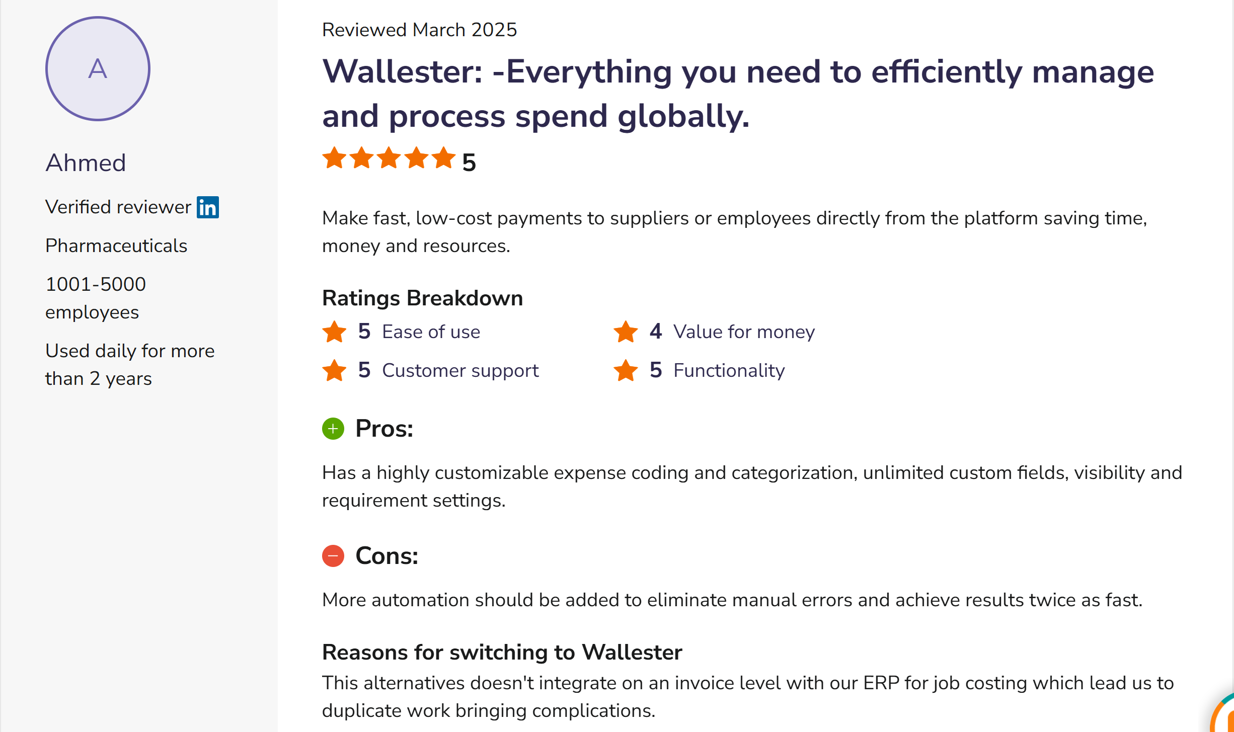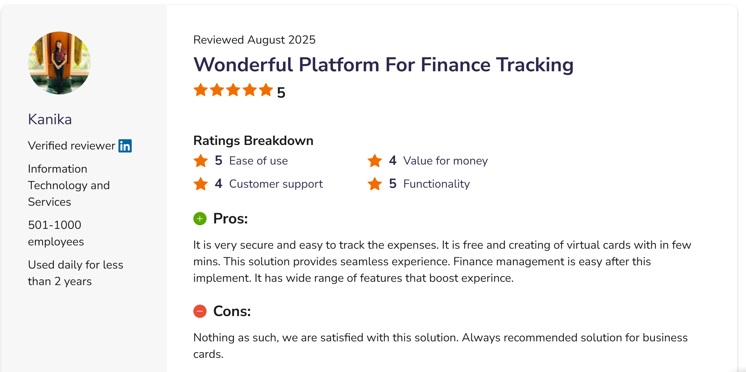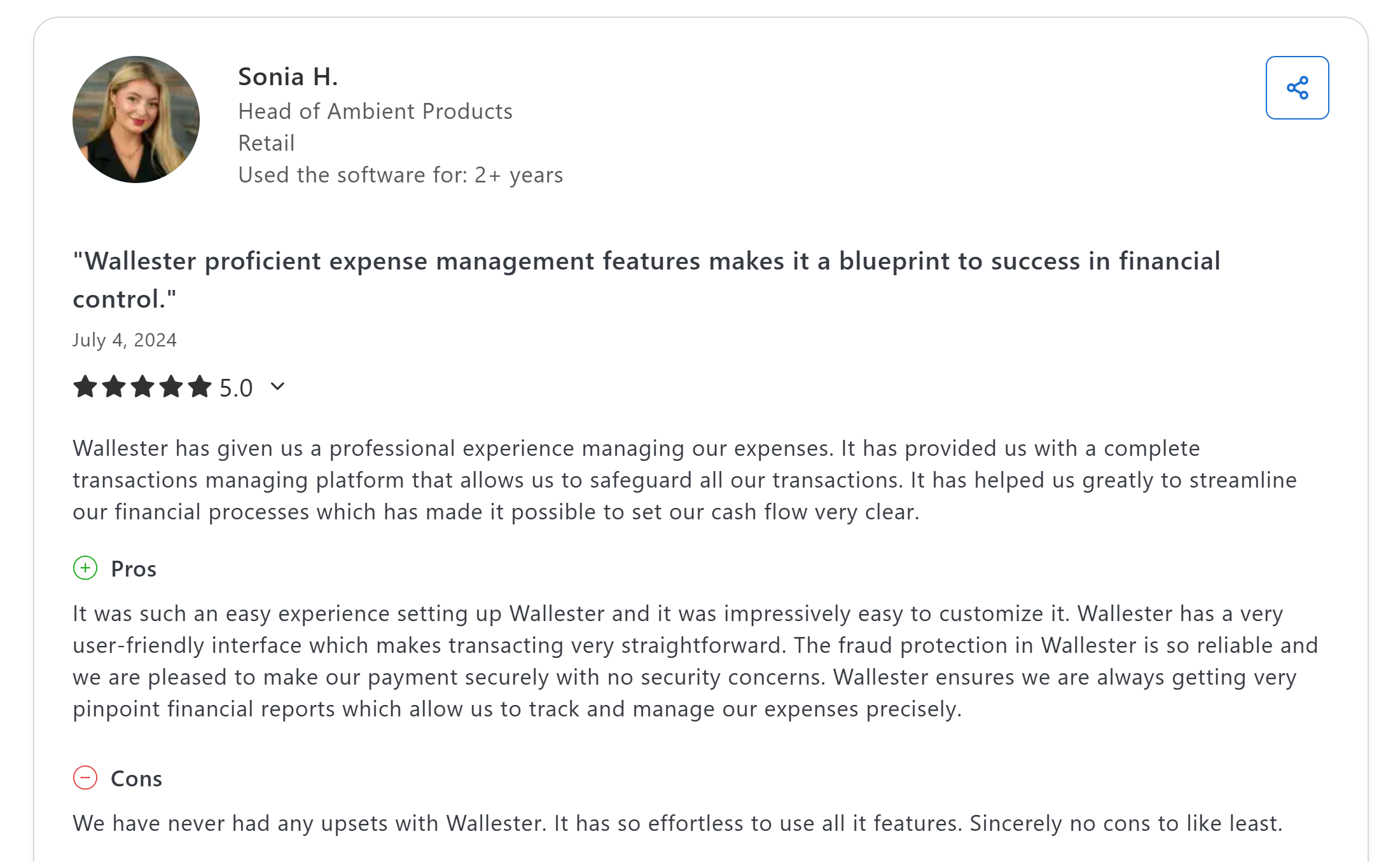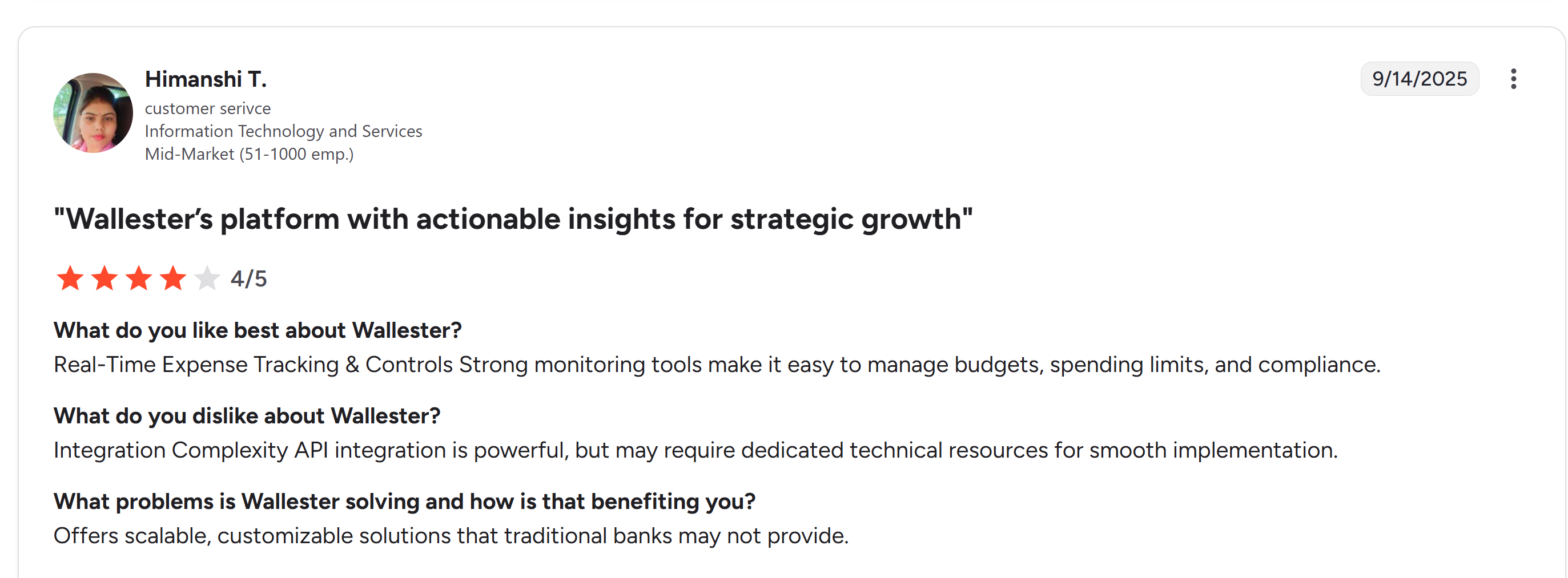 Wondering if Wallester is right for your organization? Our Expense Report Software selection experts can help you in 15 minutes or less.