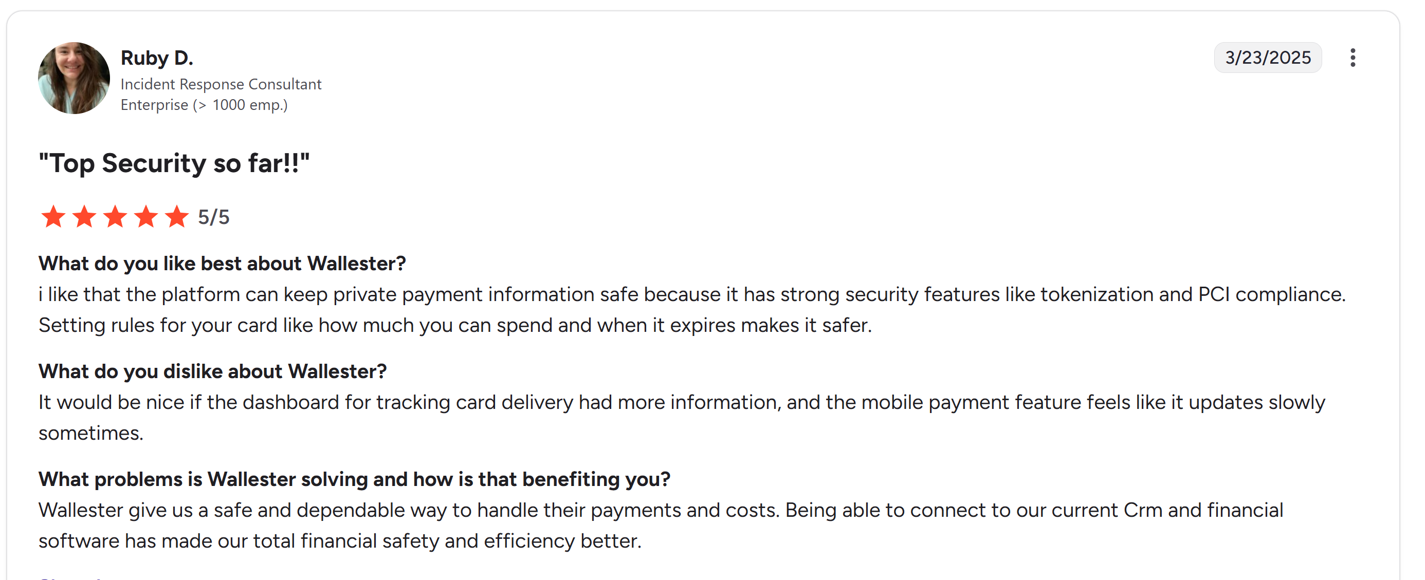 This review is based on extensive testing of Wallester's features, which include API performance, card issuance speed, pricing transparency, real-world experiments, and comparisons with competitors like Ramp to provide a comprehensive overview.